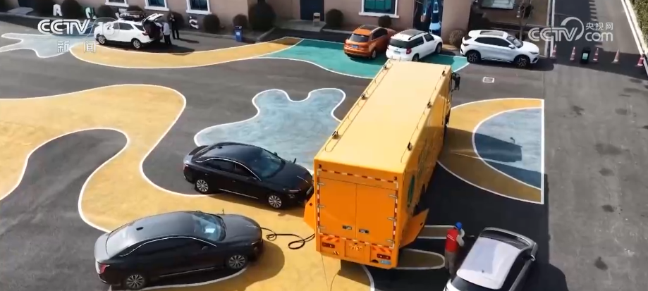 在淮徐高速的高作服务区,增配了移动充电设施,移动储能充电车能同时为4辆新能源车充电,一天下来,最多可以为72台车补充电量。