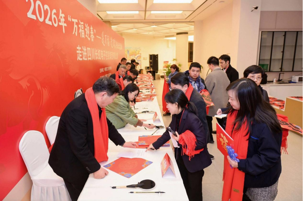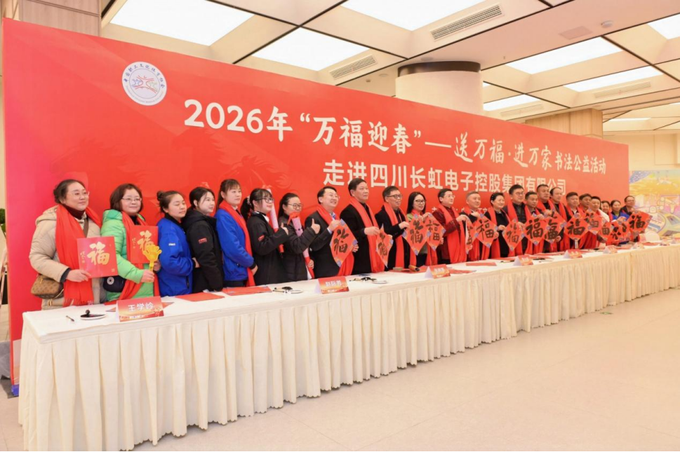 2月5日,由中国职工文化体育协会主办,中国职工书法家协会、四川省书法家协会联合承办的2026年“万福迎春”——送万福·进万家书法公益活动,在四川长虹电子控股集团有限公司虹苑剧场隆重举行。此次活动恰逢长虹第十六届嘉年华晚会,以传统文化助力企业盛典,以翰墨书香传递组织关怀,为千余名职工献上了一份独具文化底蕴的新春厚礼。