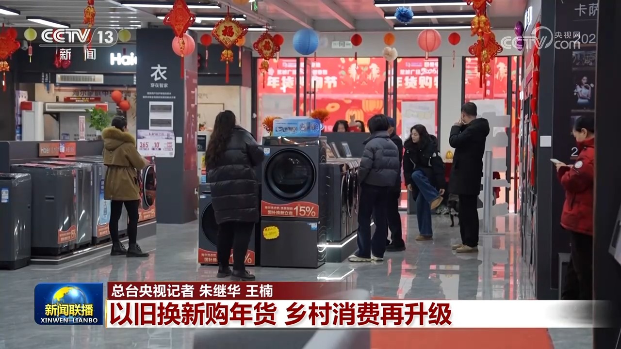 央视网消息(新闻联播):这个春节,优化升级的“国补”政策全面落地见效,为百姓年货添新彩,乡村消费再升级。