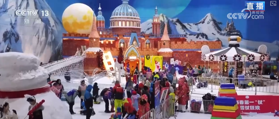 受季节影响,以往每到冬季园区的水上乐园都会进入闲置期。2026年,园区对原有的水上设施进行提升改造,通过不间断的人工造雪,营造出稳定、可控的冰雪体验环境。既实现了闲置场地的季节性再利用,更打造出文旅消费新场景。据统计,乐园开园首日门票销售额达30万元,首周客流突破5万人次,预计这个雪季将接待游客40到50万人次。