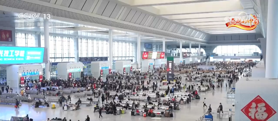 “哇,这么多人,他们都在准备庆祝春节和见他们的家人,他们需要坐火车,看我们有多少火车,它们都很准时,这太棒了。现在有很多安静的车厢可供选择,非常适合办公。”