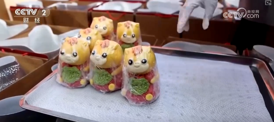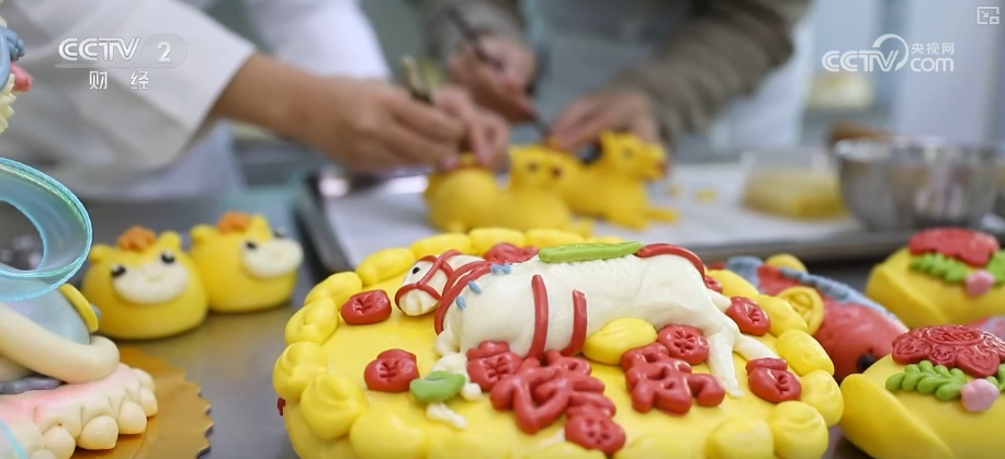 山东胶州市某面食工坊负责人杨鑫介绍,花饽饽整个制作过程非常复杂。这个小狮子的工艺就很复杂,每一个部位都需要单独来蒸制,整个小狮子需要6个小时以上才能完成。他们还有“马到福来”“马年暴富”花饽饽,也给小朋友准备了马年卡通礼盒,现在的订单也是应接不暇。