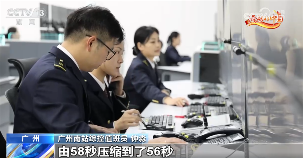 广州南站综控值班员 钟淼:春运启动前,我们调图技术人员历时一个半月的时间对运行图进行反复推演、反复优化,将广州南站平均接发列车时间从58秒压缩到56秒。