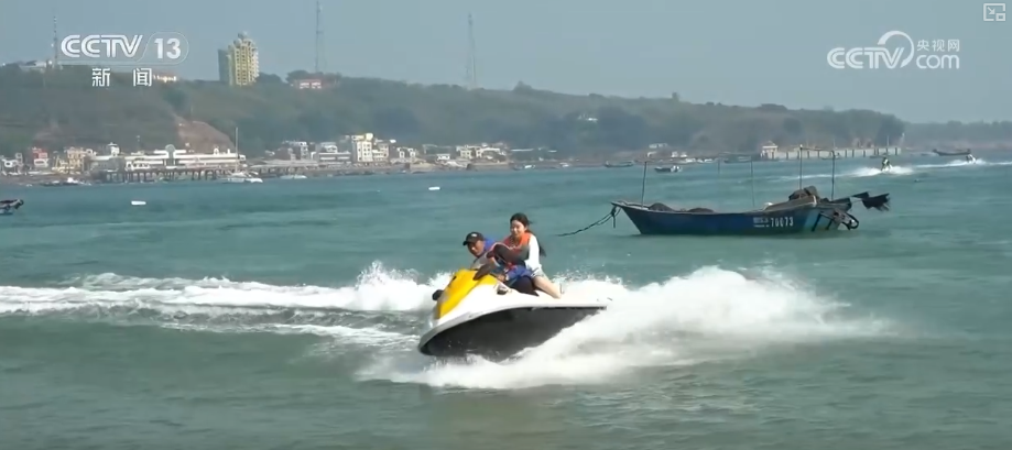 曾经的火山口藏在了海水之下。如今,游客不仅可以在海边沙滩惬意散步,还可以体验丰富多彩的海洋运动项目。南湾海洋运动公园作为鳄鱼山景区的配套区域,如今已推出帆船、水上摩托艇、水陆两栖车等体验项目,成为年轻游客的热门打卡地。
