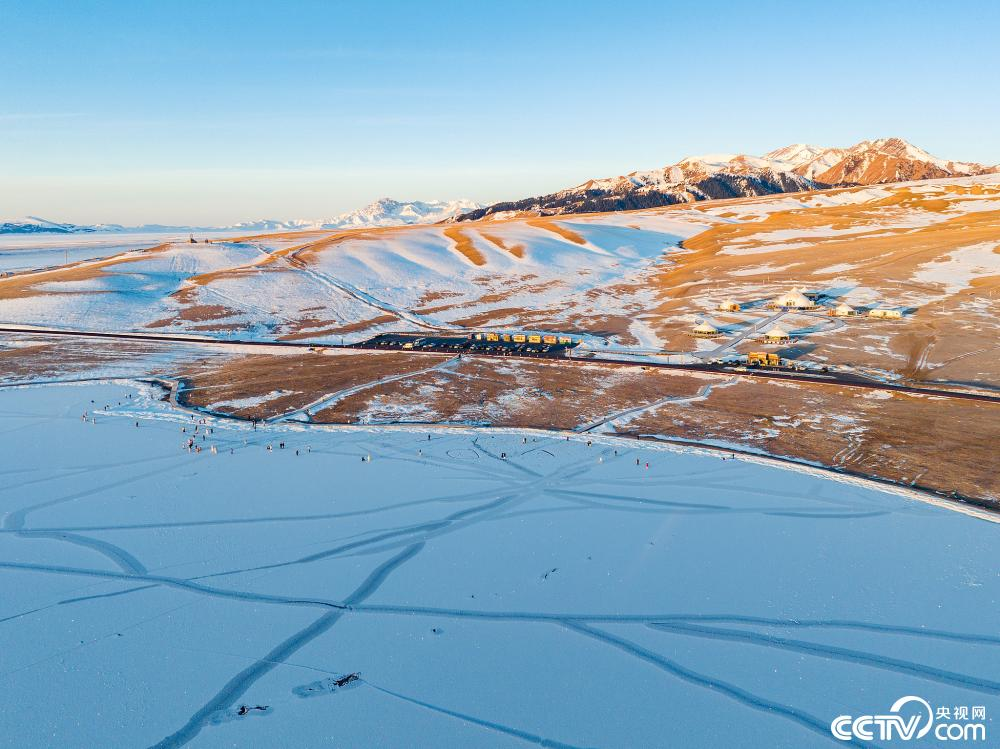 新疆博尔塔拉蒙古自治州博乐市赛里木湖景区,皑皑雪山与冰封湖面交相辉映,美不胜收。
