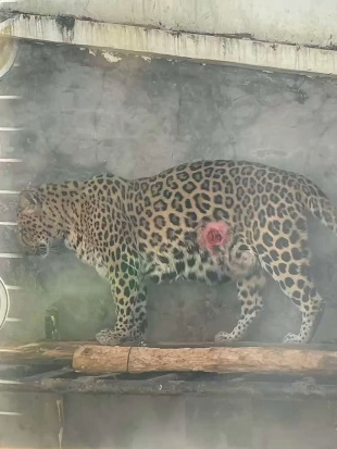 ·韶关华南虎园回应豹子肚子有洞状伤口:舔伤口致创面扩大,已联系专家治疗。