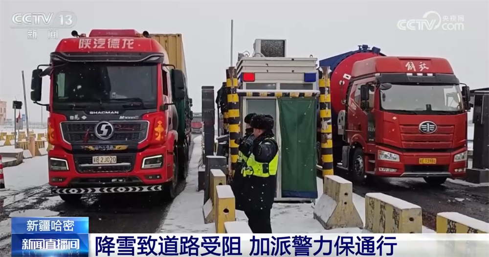 新疆哈密:降雪致道路受阻 加派警力保通行